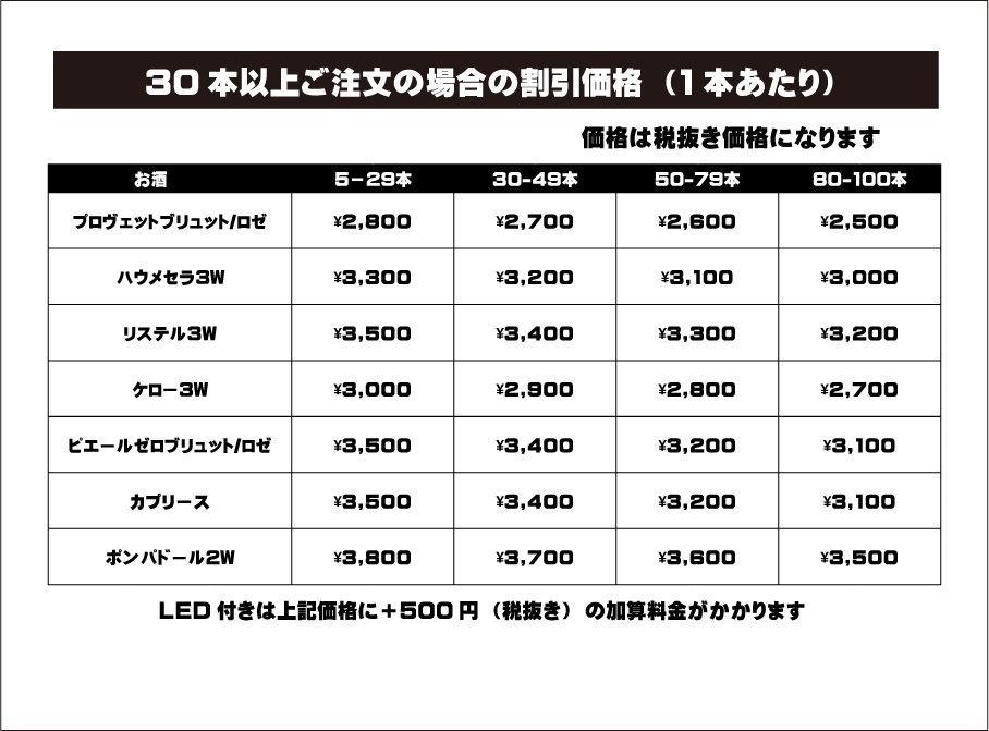 ラッピングオリシャン30本以上のご注文の際の割引価格のご案内
